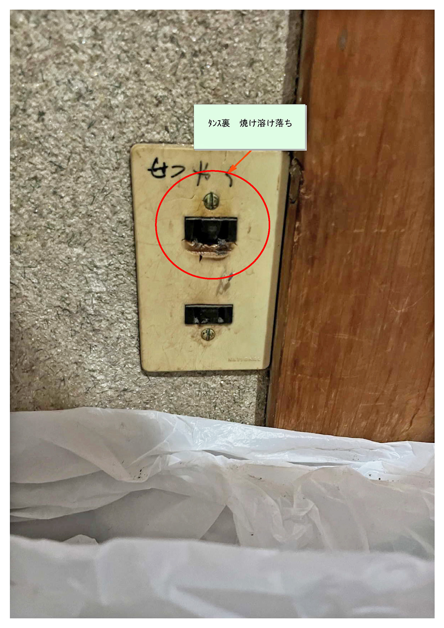 普段は動かさないタンスの裏や冷蔵庫の裏などで、コンセントの焼損が起こりやすくなります。