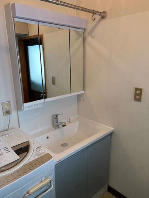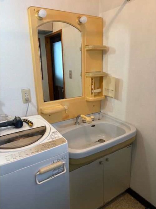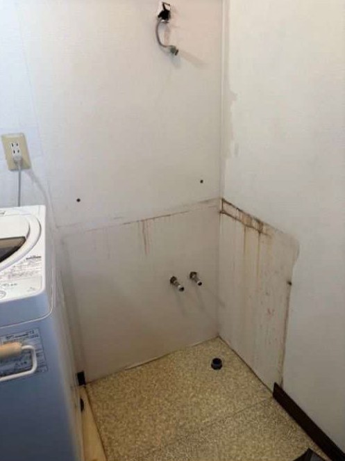 古い洗面台とり外して作業をいったん中断し、できる限りのお掃除をさせていただきました。