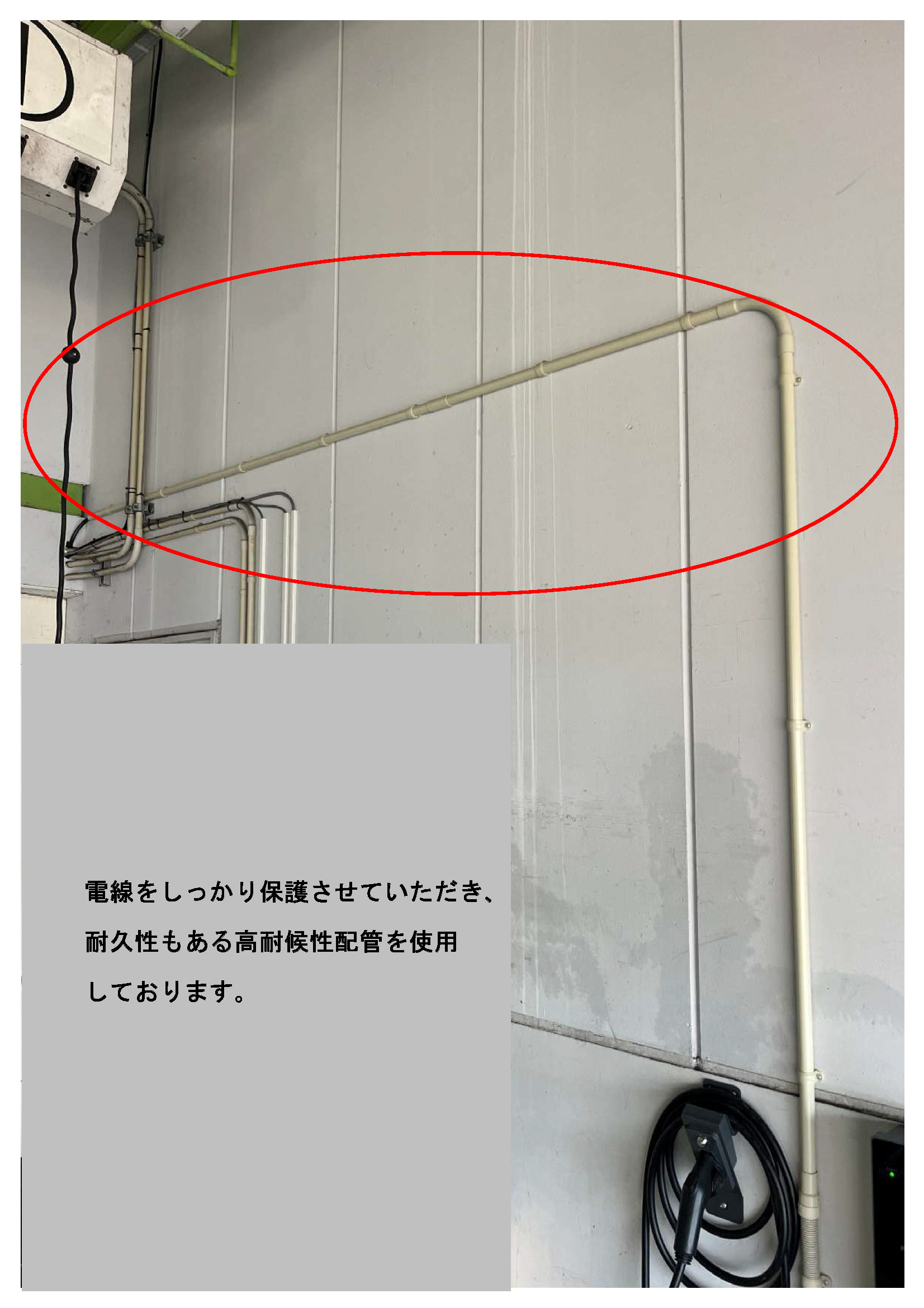 耐久性もある高対候性配管を使用し、電線をしっかりと保護しました。